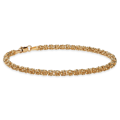 A weave of polished, hollow links in Italian 14k gold form our lightweight, distinctive petite Byzantine bracelet.
