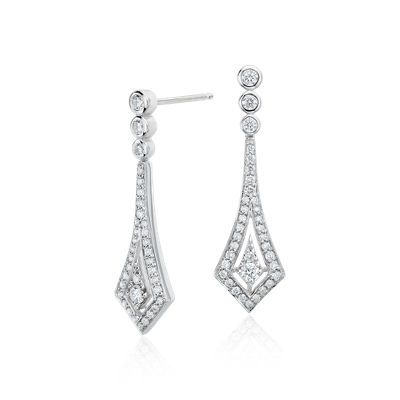 Light up any occasion with these dazzling 14k white gold earrings, adorned with round diamonds and a deco-inspired design.