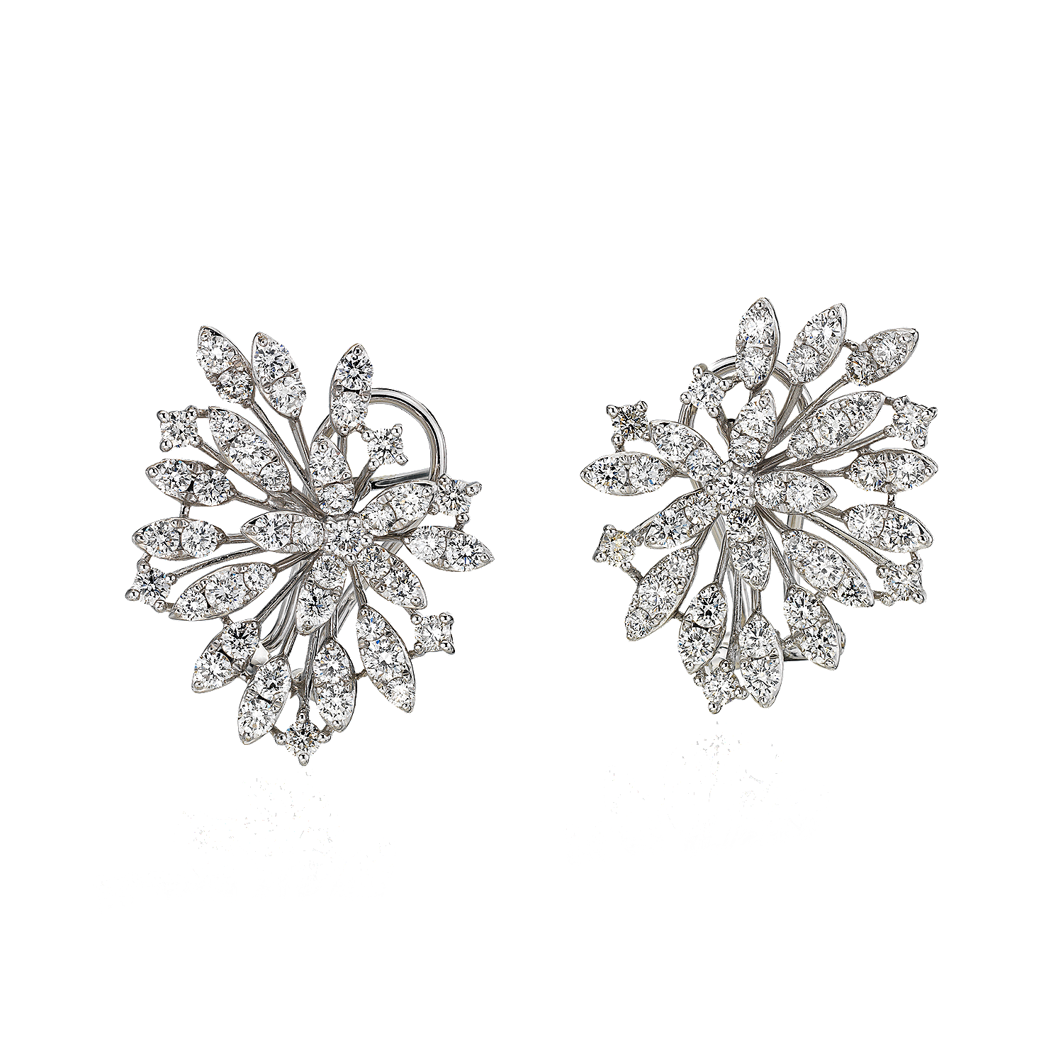 Dynamic and dazzling, these fashionable sunburst-style stud earrings display 88 round-cut diamonds in 14k white gold, for when you want a look that really delivers the shimmer.