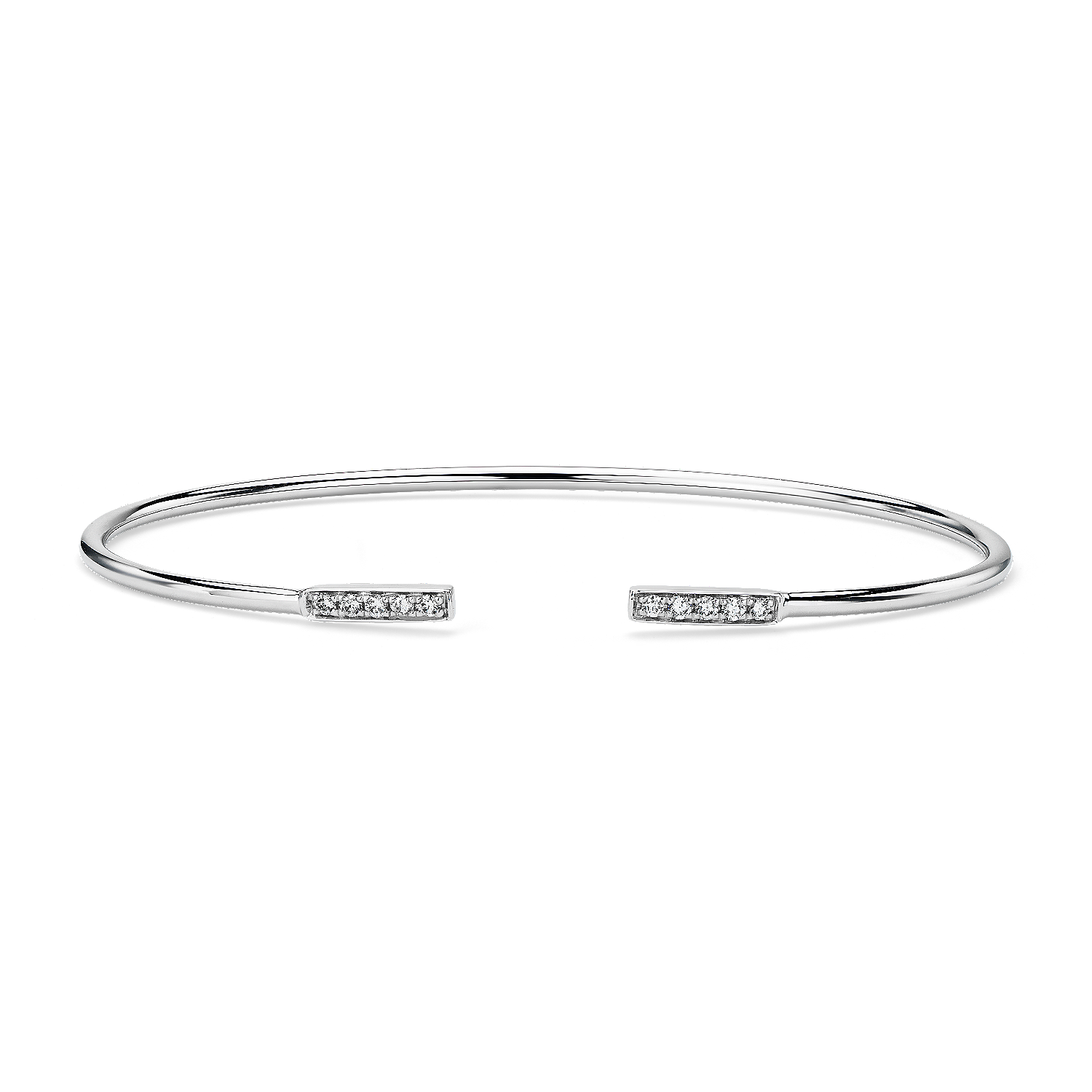 Slip on some versatile style with this 14k white gold flex bangle. The open-bar style ensures a comfortable slipping on and off, and ten round-cut diamonds deliver just the right touch of sparkle.