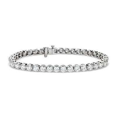 Brilliance defined, this diamond tennis bracelet features brilliant cut round diamonds set in a four-prong straight line design of 18k white gold.