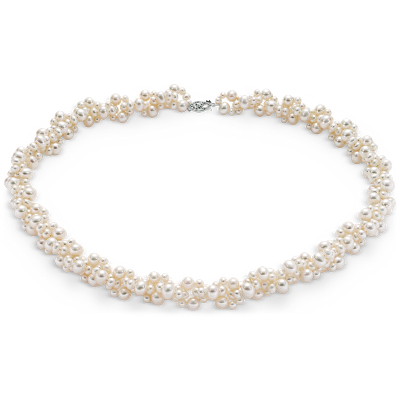 Freshwater Cultured Pearl Cluster Necklace with 14k White Gold (3-5mm)
