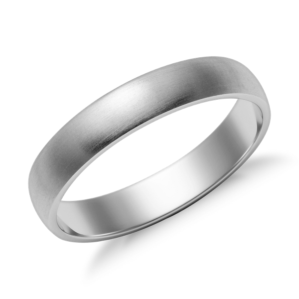 Simply classic, this 14k white gold wedding band features a low profile silhouette, modern brushed finish and a lighter overall weight for comfortable everyday wear.