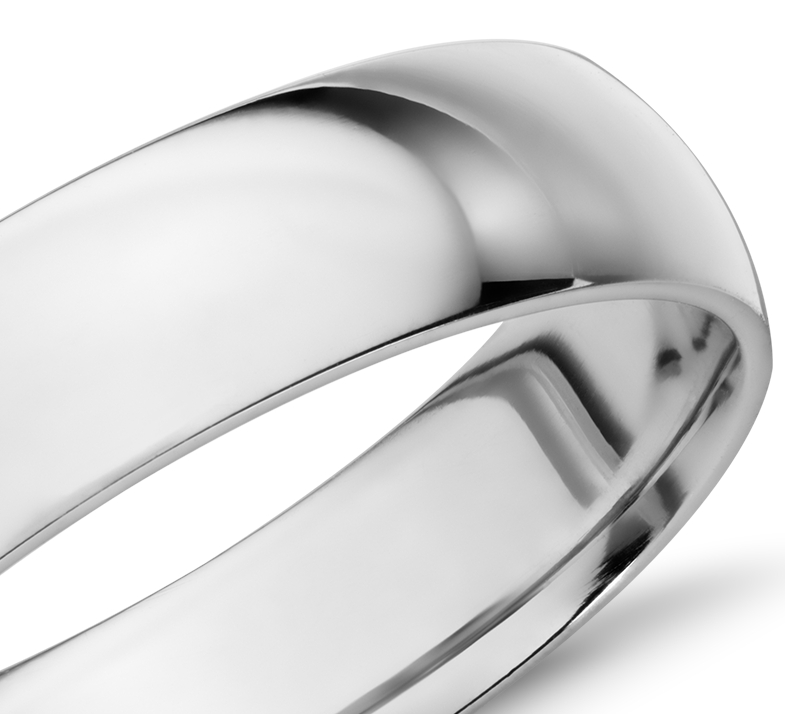 This 14k white gold wedding ring is the ideal mid-weight style with a traditional higher domed exterior profile. Curved inner edges make this style extra comfortable for everyday wear.