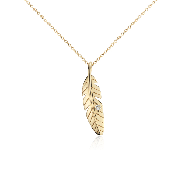Give your jewelry collection a lift with this dainty 14k yellow gold feather pendant, featuring a delicate round diamond accent and matching cable chain necklace with two-inch extender for easy adjustment to 16-inches or 18-inches.