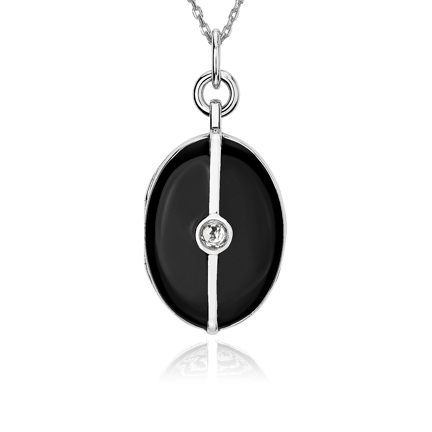 Surrounded by a field of black enamel, bright white topaz shines at the center of this sterling silver pendant necklace for a dramatic look that looks good all on its own or layered with your favorites.