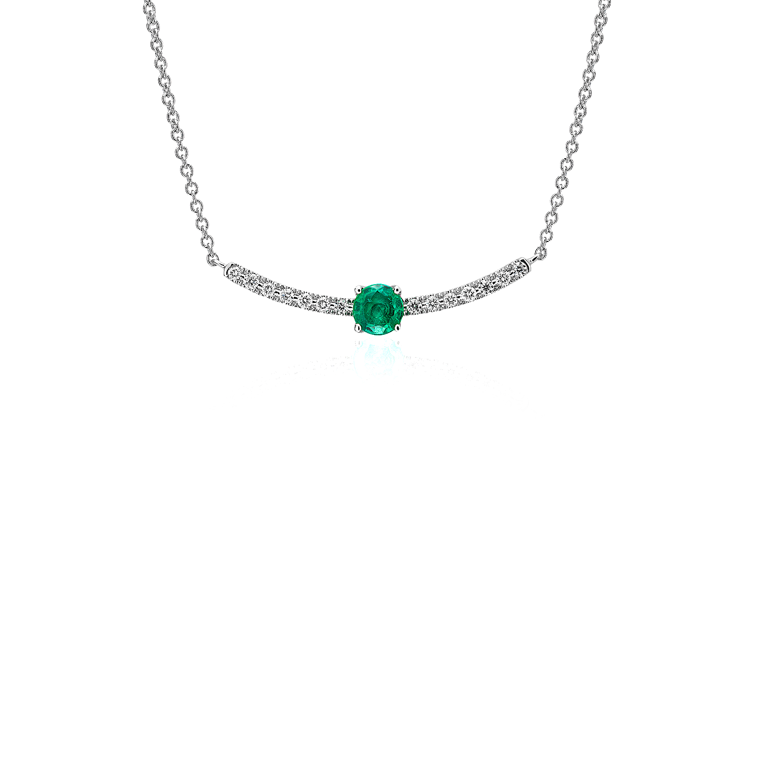 A lush, vibrant emerald adds a bold flourish to the dazzling diamonds in this 14k white gold smile necklace. An adjustable cable chain length delivers a just-right fit.
