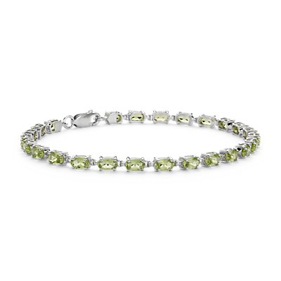 Truly bright and festive, this gemstone bracelet features vibrant peridot gemstones framed in a delicate sterling silver setting.