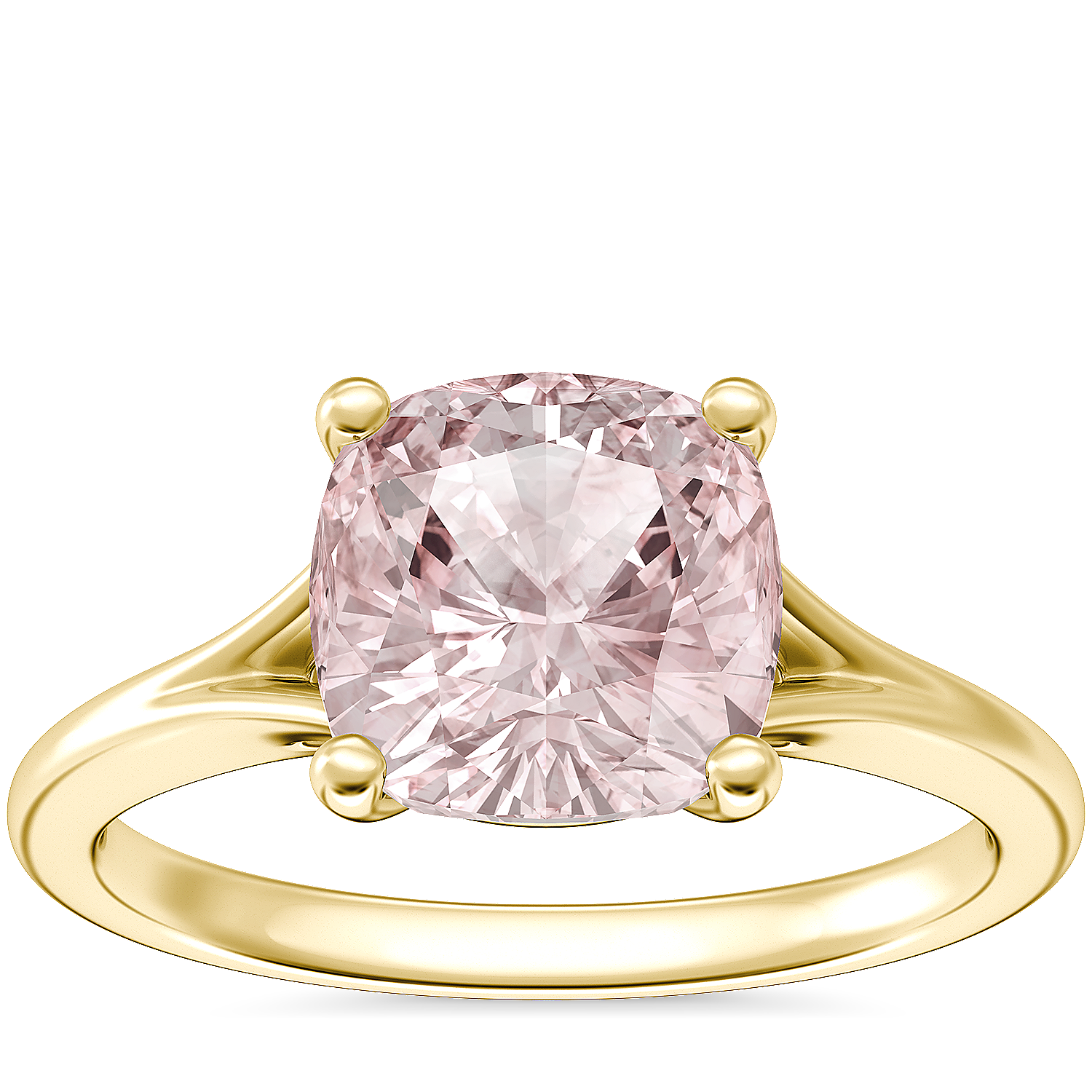 Petite Split Shank Solitaire Engagement Ring with Cushion Morganite in 14k Yellow Gold (8mm)