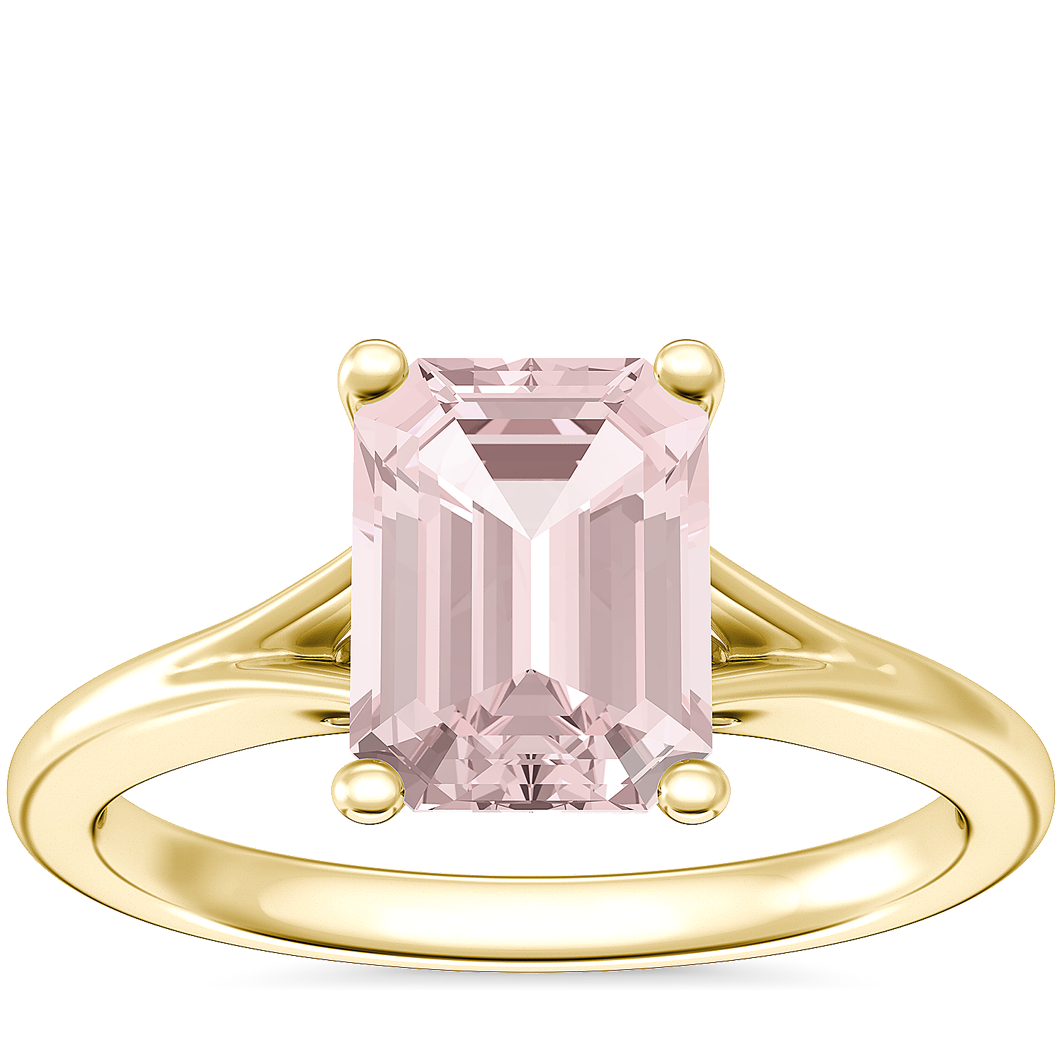 Petite Split Shank Solitaire Engagement Ring with Emerald-Cut Morganite in 14k Yellow Gold (8x6mm)