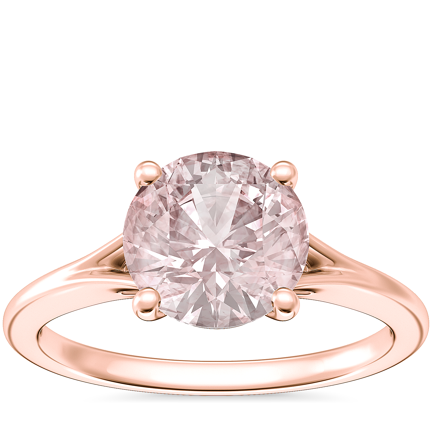 Petite Split Shank Solitaire Engagement Ring with Round Morganite in 14k Rose Gold (8mm)