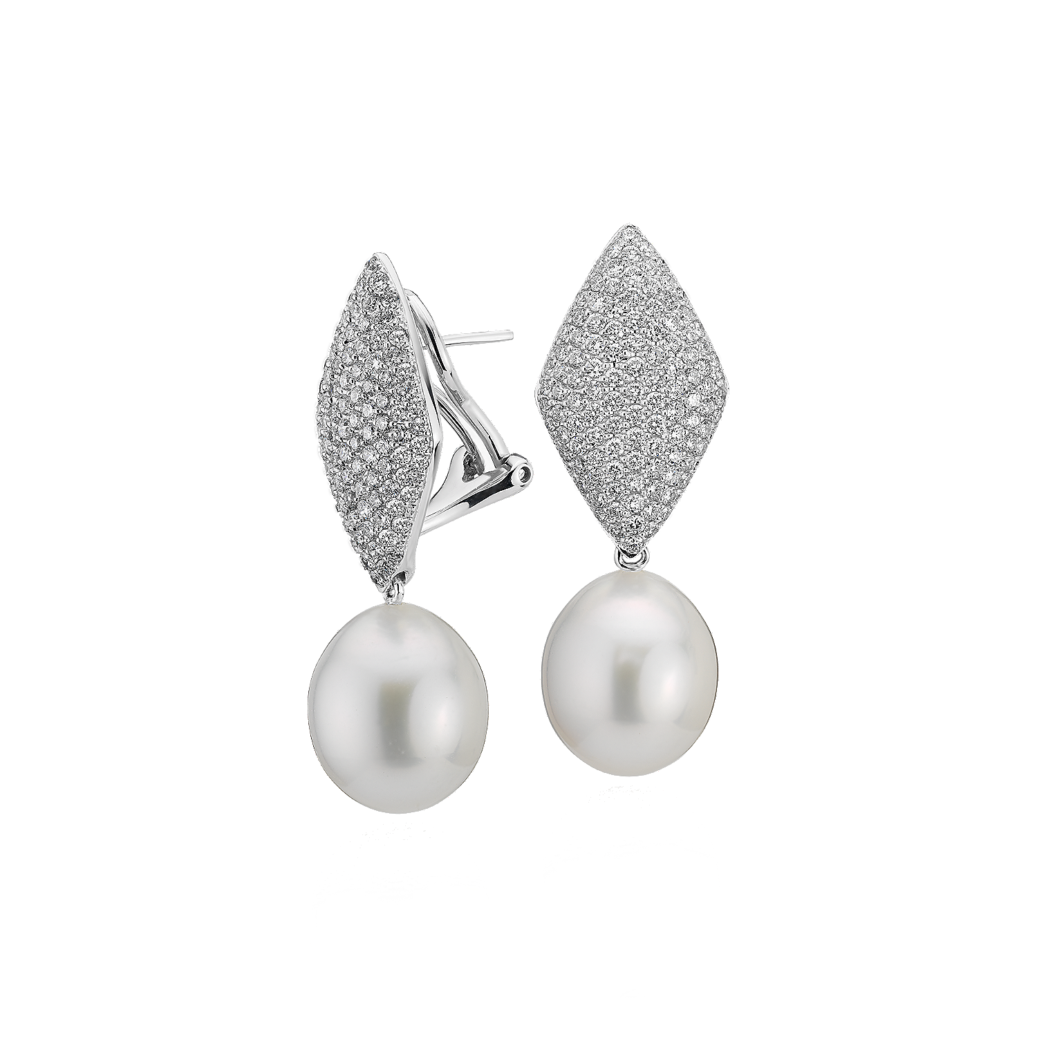 South Sea Cultured Pearl Earrings with Pavé Diamond Kite in 18k White Gold (11.9 mm)
