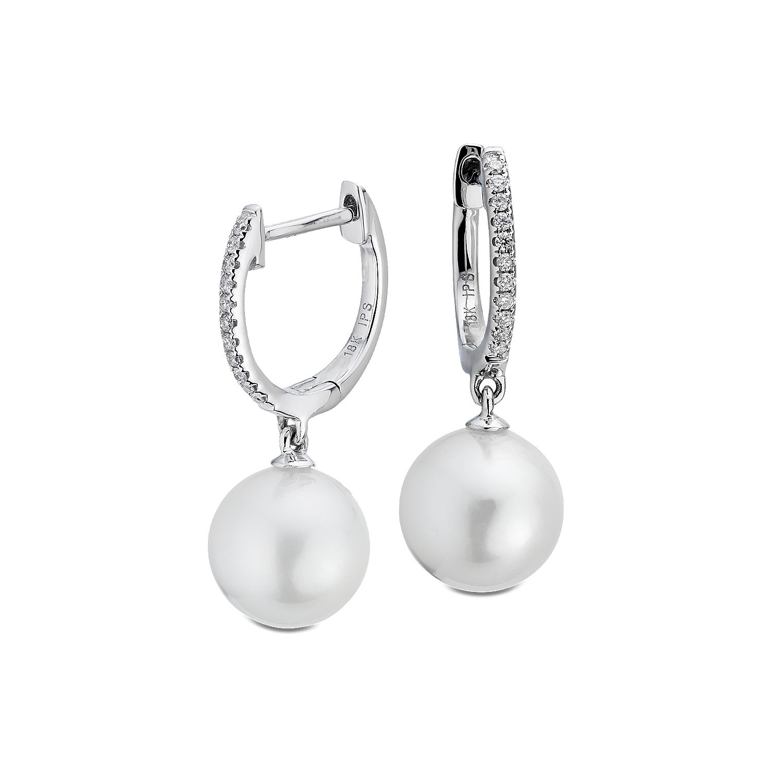 White South Sea Pearl Earrings with Diamond Hoops in 18k White Gold (8-9mm)